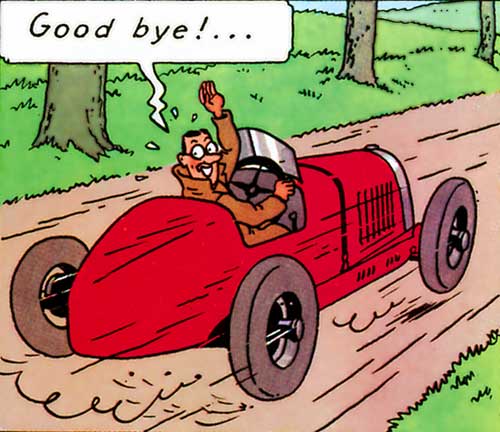 Continuing with “Tintin in America”, in one of the scenes, the villain escapes in a red sports car. This car was a Bugatti Type 37.