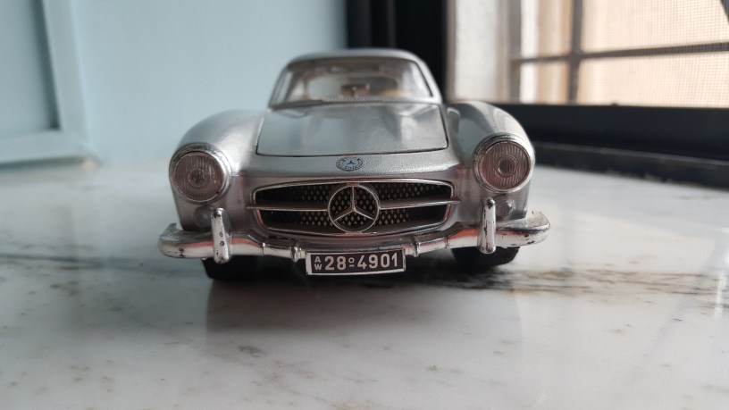 Notwithstanding, it was kind of love at first sight and the second 1:18 scale model that I bought was a, well, silver Mercedes 300 SL. It occupies a place of pride in my collection and once I started to understand the technology behind the car, I was even more enamoured by it. This car was developed from a racing sports cars from 1952, the Mercedes SL. The American importer of Mercedes, Max Hoffman was able to convince the board of Mercedes about the market for a light and fast sports car in USA. Mercedes took the gamble and introduced the Mercedes Benz 300 SL in 1954 during the International Motor Sports Show at New York. This was departure for Mercedes as all their new launches till then had been at either Frankfurt or Geneva. However, the gamble paid off and 80% of the cars ever produced were sold in the USA.