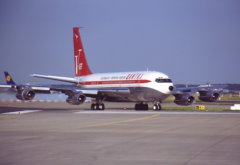 The Pratt and Whitney JT3D engines were turbofan engines derived from the JT3C turbo jet engines. They had an axial flow two stage fan which was driven by a gas turbine with 6 stage Intermediate Pressure and 7 stage High Pressure compressors. They had cannular 8 flame combustor to ignite and burn the fuel which operated an axial single stage High Pressure Turbine and a 3 stage Low Pressure Turbine. These engines produced 80 kN (18,000 lb-ft) of thrust each. This allowed for a maximum take off weight of 117 tons (257,340 lbs). Four of these engines allowed a cruise speed of 977 km/h (607 mph). A 707-120, on which the Qantas 707-138 was based had a range of 6,700 km (4,100 miles).
