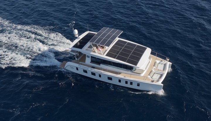 Silent Yacht manufactur electric and solar powered sea-going yachts at their associate shipyards in Italy and China. They would be launching the Silent 55 in Sep 2019 at Cannes Yachting Fesitval. The Silent 55 is built by Mazarin German Yachts at their Chinese facility. The Silent 55 is a 56 feet electric-battery catamaran. This yacht will cost approximately Euros 1.5 Million. The company claims that the Silent 55 has a much lower carbon footprint as well as operating costs, thanks to its high efficiency solar panels and Lithium batteries. Because it is battery powered and these batteries are charged by the solar panels, theoretically the yacht has an unlimited range till the sun is out. The batteries have enough juice to power the windlass, airconditioning, lighting and powered swimming platform at night. The propulsion motors of Silent 55 are; umm; silent with low vibrations and are virtually maintenance free.