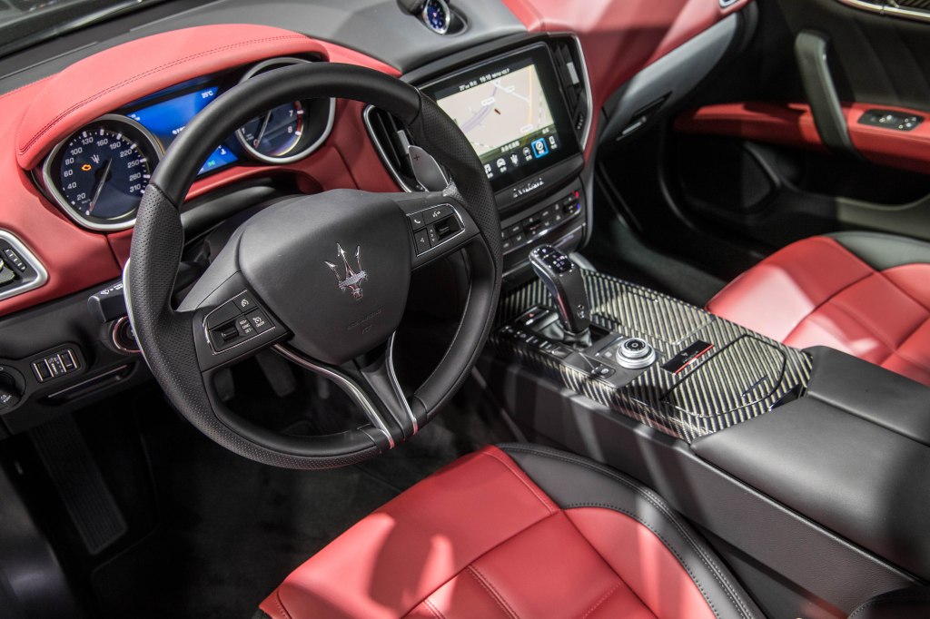 The Ghibli has been endowed with a special red and black interior done tastefully in leather, aluminium and carbon fibre.