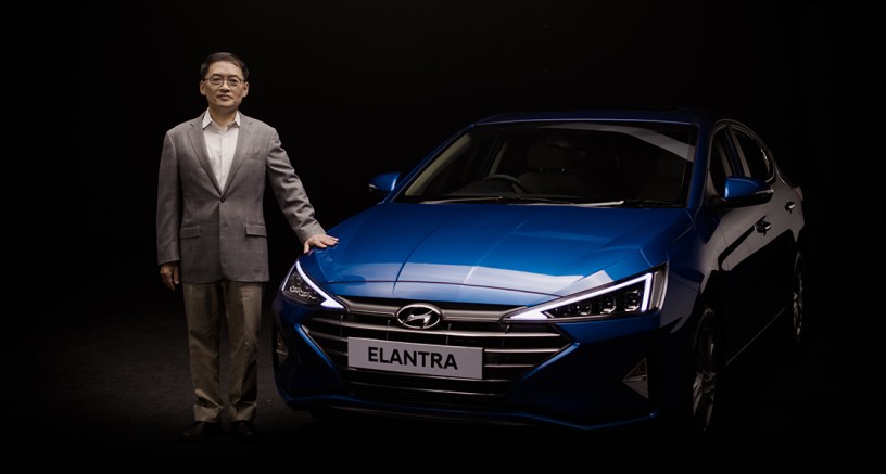 Hyundai India introduced the model year 2019 Elantra in New Delhi. The car is an evolution of the outgoing model with a sharper hexagonal grille. A new bumper and air dam, again with much sharper and crisp edges than the outgoing car. The grille is bound by triangular headlamps which include the LED DRL in an inverted “tick” shape. The main headlamp comprises four (quad) projector LED lamps. The rear lamps have a unique emblem design. The car has an elongated coupe shape with strong character lines accentuating the dynamic shape of the car. The 16″ wheels fill the wheel arches nicely. Hyundai is offering the Elantra in 5 colurs – Marina Blue, Polar White, Typhoon Silver, Phantom Black and Fiery Red.