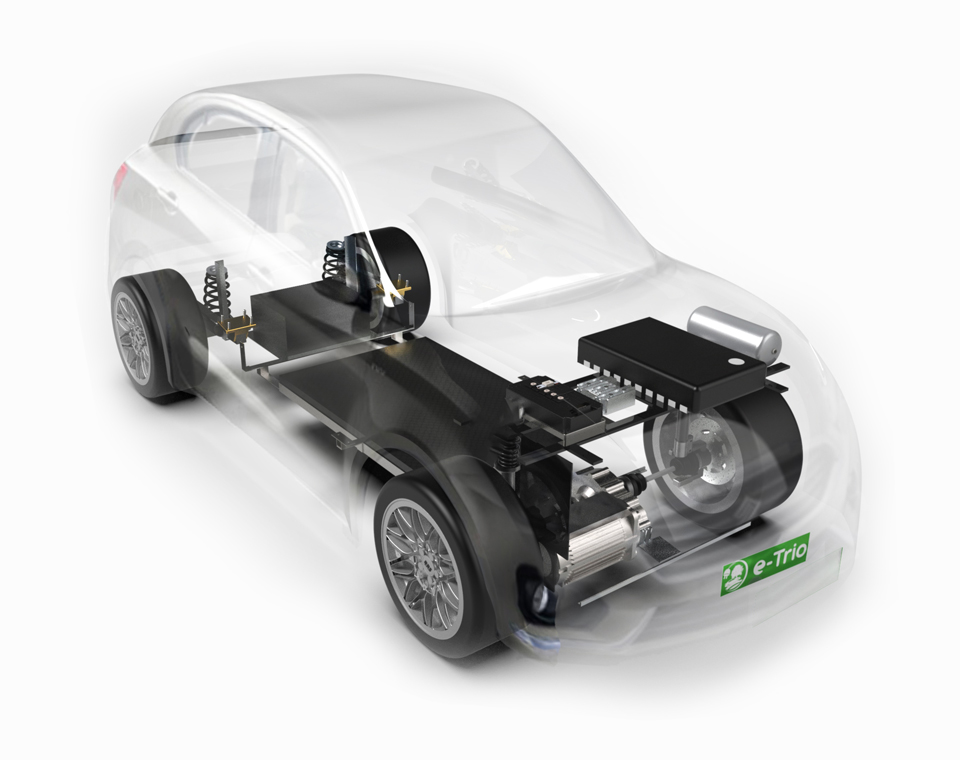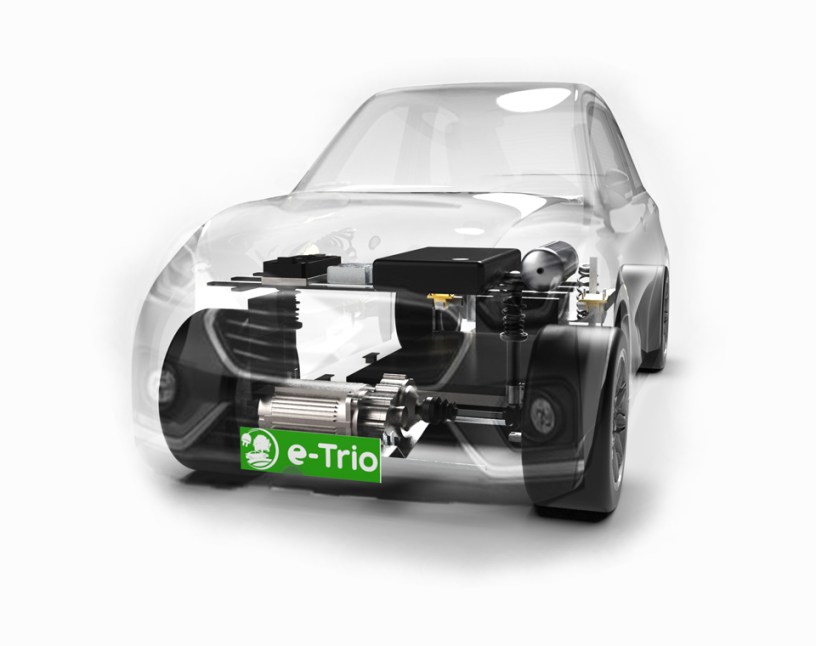E-trio is an Indian startup based in Hyderabad, India. The company produces electric bikes under their own brand name. In addition the company has also developed electric power trains and battery systems along with battery cooling and control systems as kits. These kits are used to retrofit IC engine cars into electric cars. The company has already developed the kits as well as converted popular car models like the Maruti Suzuki Alto and Dezire and Tata Ace into electric vehicles.