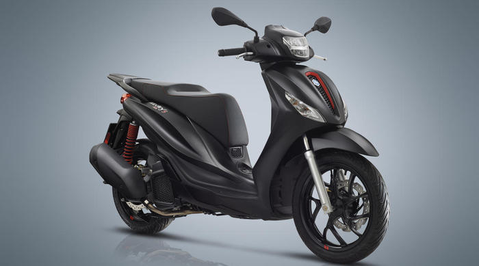 The Beverly Range is available with 300 and 350 cc engines. Piaggio Beverly 350 Tourer, the new flagship in the Beverly range, comes as standard with the practical and sporty tinted top fairing and spacious 36-litre top box which matches the vehicle and comes complete with backrest to match the saddle. It also offers smartphone connectivity.