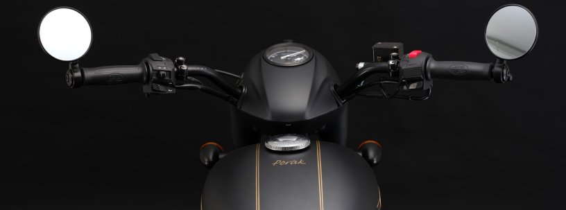 The frame is a double cradle tubular structure with telescopic hydraulic fork at the front while a 7 step adjustable mono-shock does duty at the rear. Both front and rear wheels are wire mesh in keeping with bobber story and are fitted with disc brakes for safety, 280 mm at the front and 240 mm at the rear. The Perak comes with a dual channel ABS for added safety. The bike has a kerb weight of 179 kg, which is not very heavy and comes with a 14 litre tank.