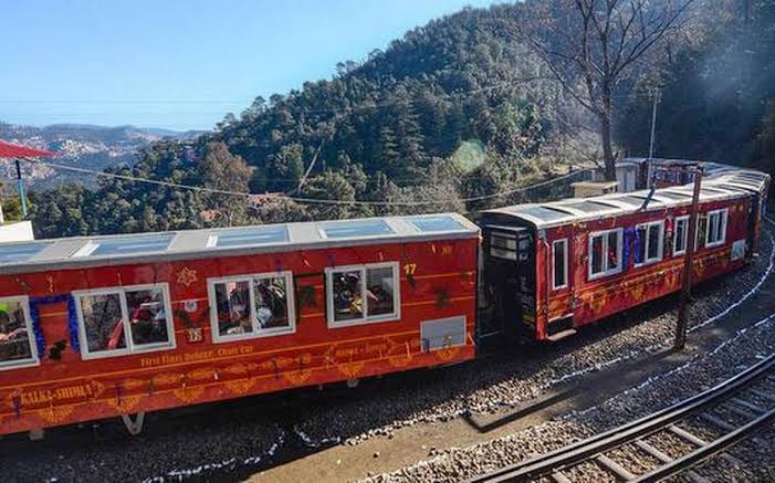 “Him Darshan” literally means audience with snow. The Indian Railways have locally modified and built the luxurious “Him Darshan” Express which will connect the town of Kalka at the foothills to the city of Shimla high in the Himalayas. The train will comprise six first class air conditioned coaches out of which five have been provided with glass vistadome roof. These coaches have been fitted with modern windows and blinds and air conditioning. The five Vistadome coaches can seat 15 people each in luxurious coaches with wooden interiors while there is one first class cum luggage car which can seat 14 people. Out of 15 passengers, 10 will have access to the windows. The glass roof will allow the passengers a panoramic view of the surrounding Himalayas as the train will snake its way up the mountain to Shimla.