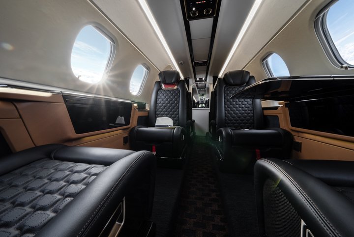So what are the enhancements? Well, first and foremost, the aircraft comes with a new suite of avionics. This includes the world’s first ROAAS or Runway Overrun Awareness and Alerting System offered in a business jet. In addition the new avionics suite offers predictive windshear, Emergency Descent Mode, PERF, TOLD, and FAA Datacom. The cockpit now also allows single pilot operation through the Prodigy Touch Flight Deck which is based on the Garmin 3000 avionics suite. This system improves the situational awareness by providing clear information about the speed, altitude, fuel, engine performance and other flight parameters. The Phenom 300E also offers 4G connectivity via Gogo AVANCE L5.