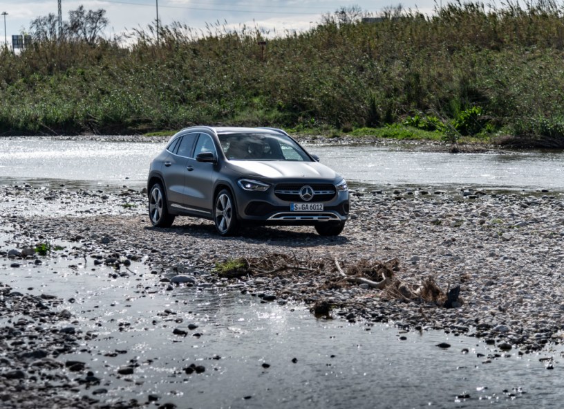 The Mercedes GLA has MacPherson suspension with spring strut and transverse control arm, coil springs, twin-tube gas-filled shock absorbers and stabiliser bar at the front. At the rear, it has a multi-link, coil springs, gas-pressure shock absorbers and stabiliser. For stopping the car safely, the Mercedes GLA is fitted with Vented disc brakes at the front, electric parking brake, ABS, Brake Assist, ESP. Steering is assisted using electric motors.